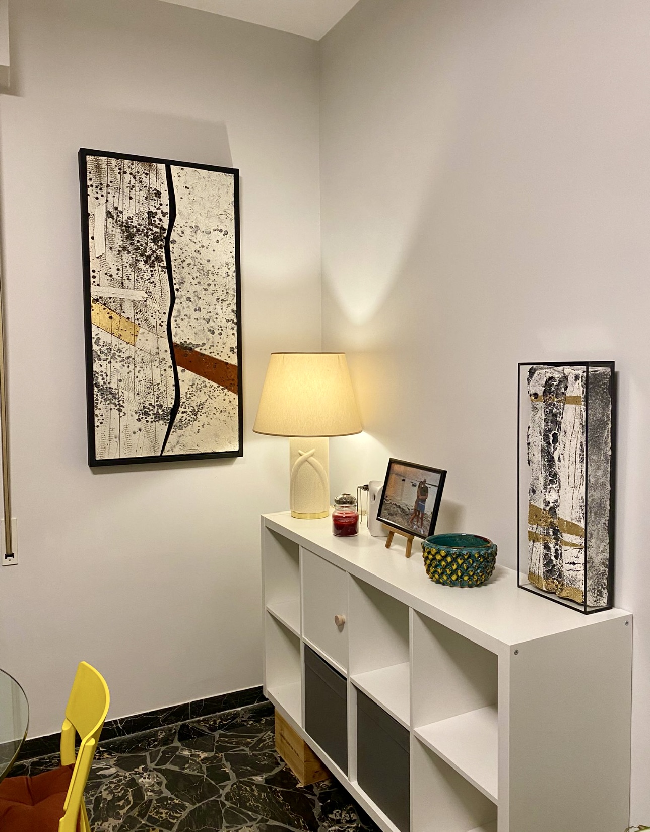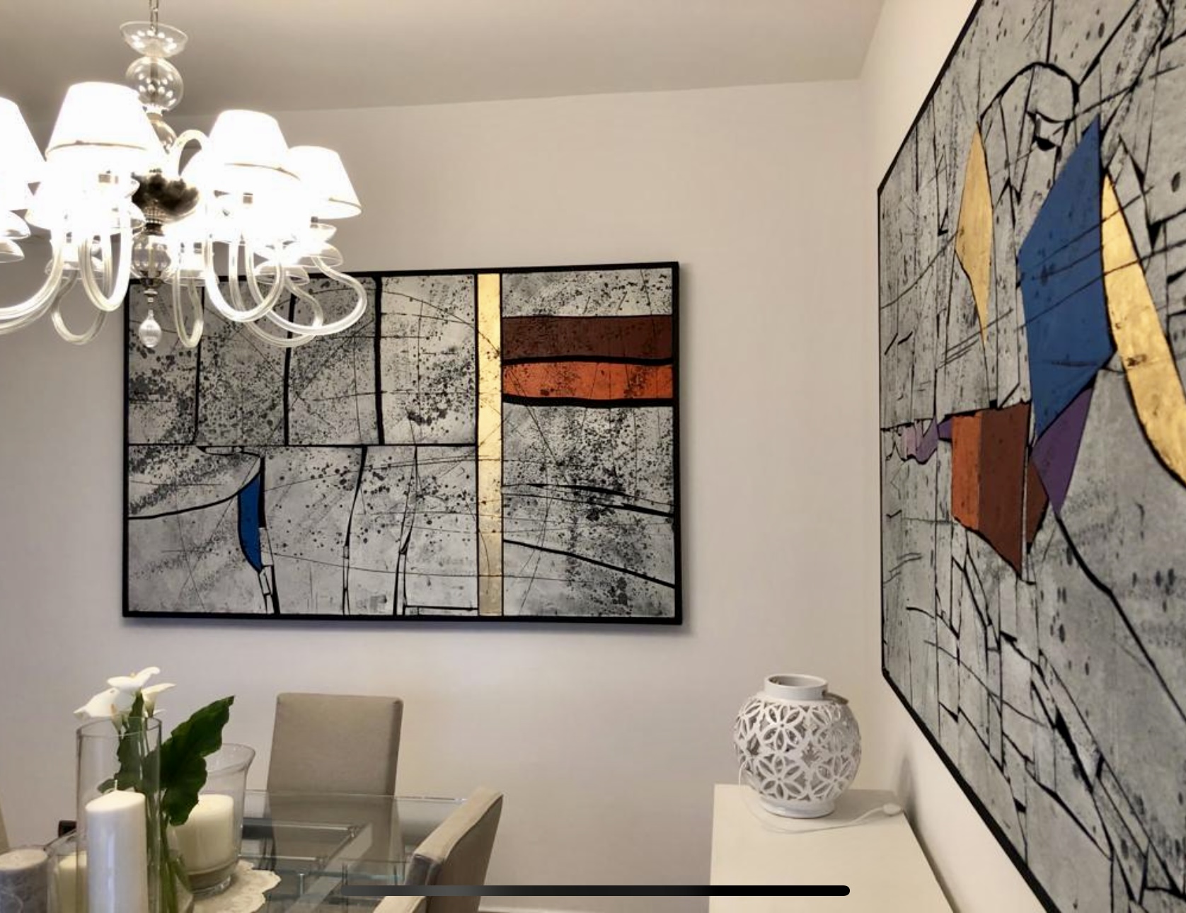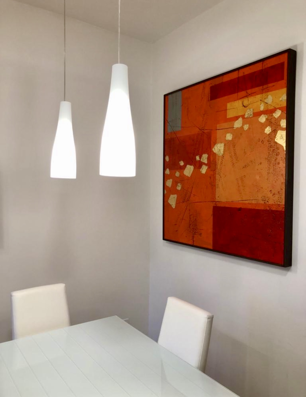 Cosa c'è di meglio che sedersi sul proprio divano e leggere un buon libro e ogni tanto lasciare andare la mente nei suoi pensieri...alzando lo sguardo verso la propria opera d'arte preferita...Oppure passeggiare per casa e sentire il piacere d'essere circondato e coccolato da segni e colori che, creando la giusta armonia con l'ambiente circostante, ti fanno apprezzare e vivere di buon gusto in pace con i tuoi cari la bellezza della tua casa...Oppure ritornare dopo un viaggio e sentire il calore di cose vissute e familiari che ti donano atmosfere private e personali...