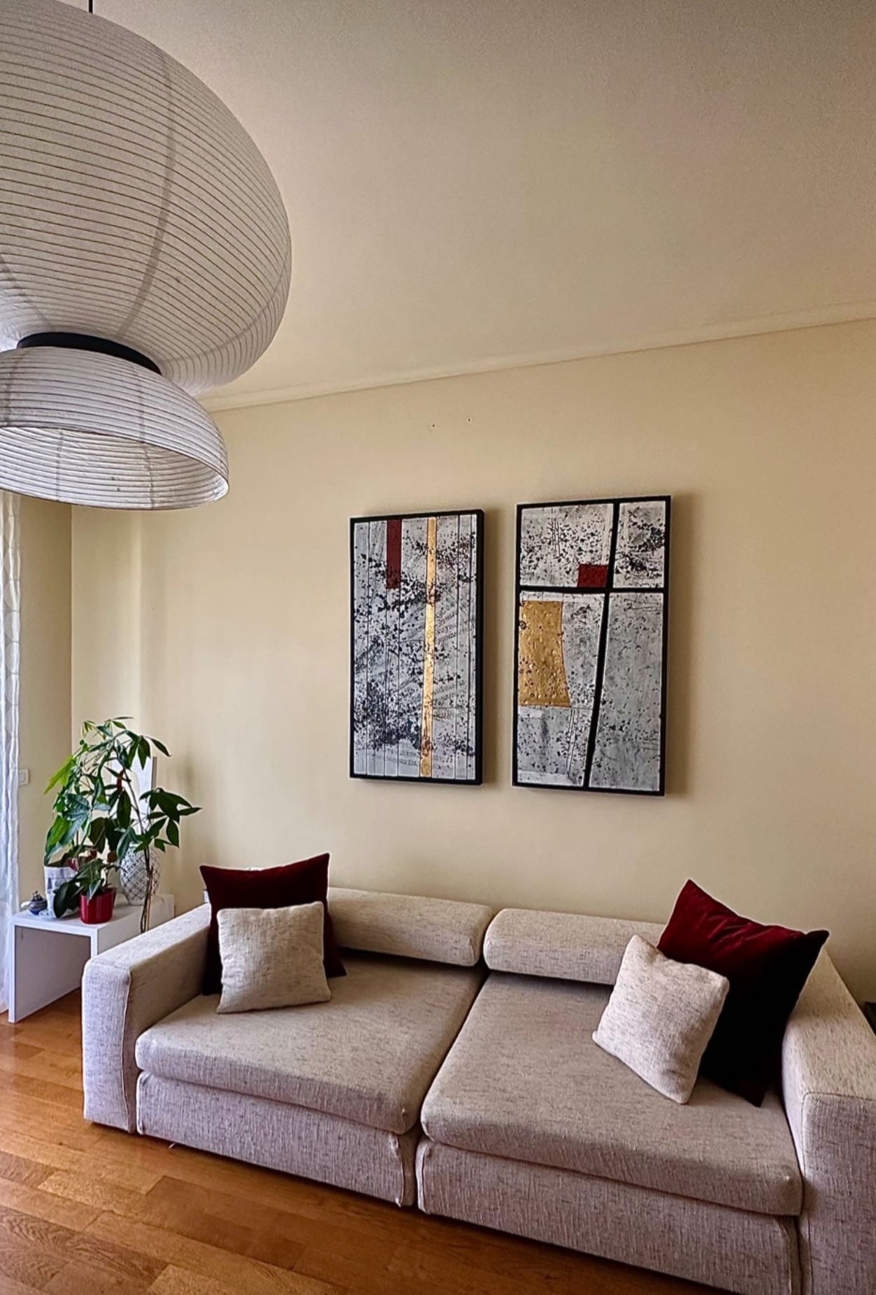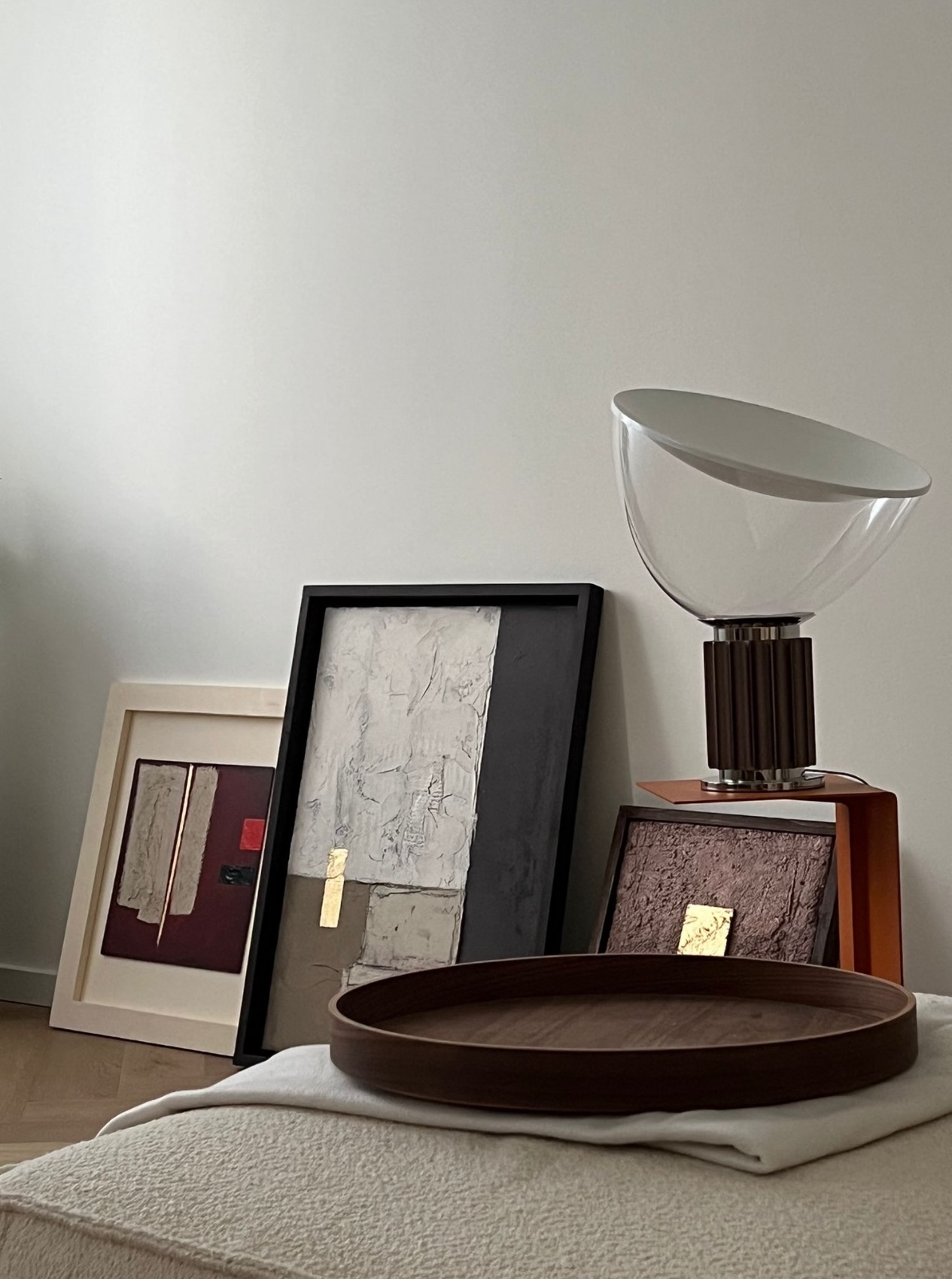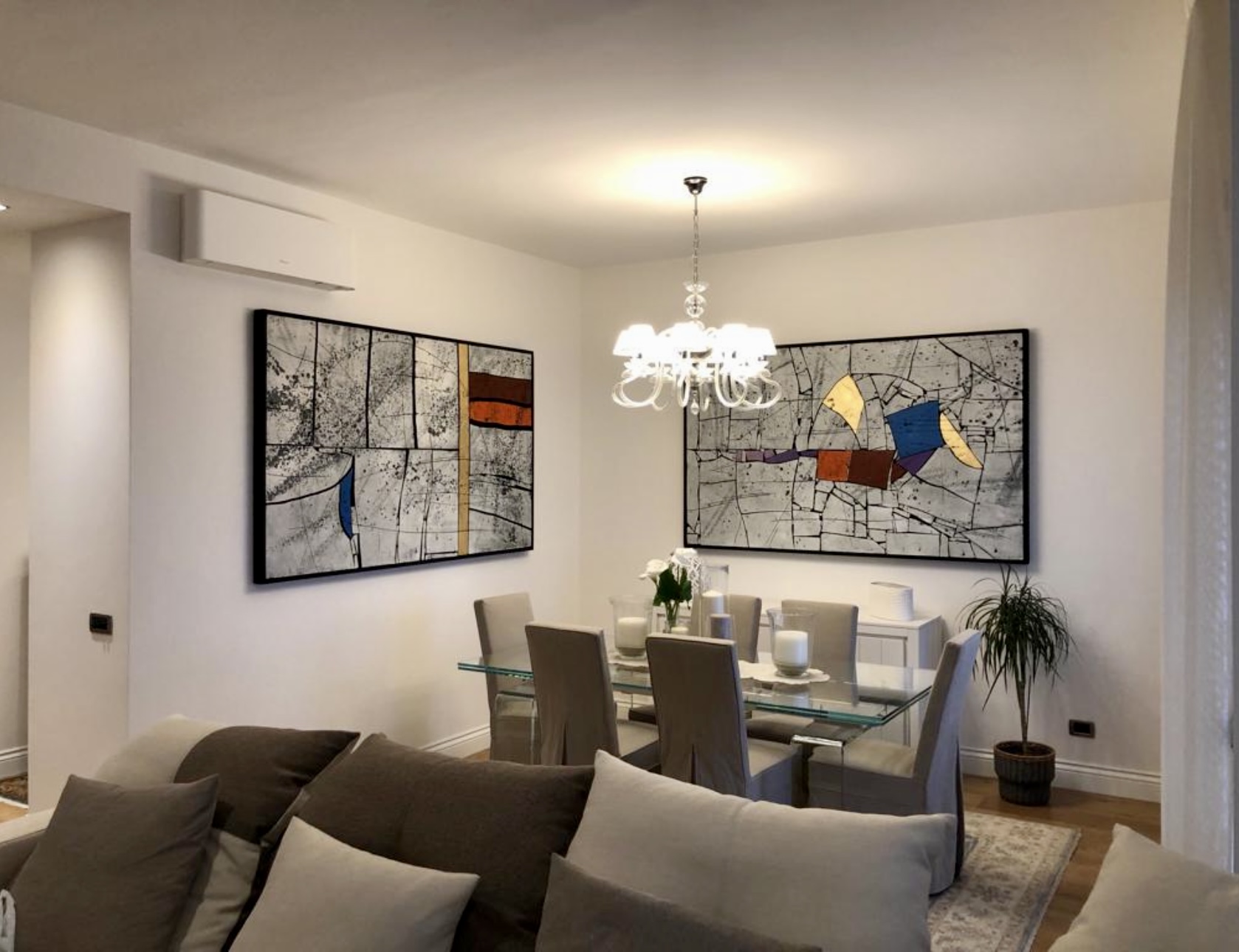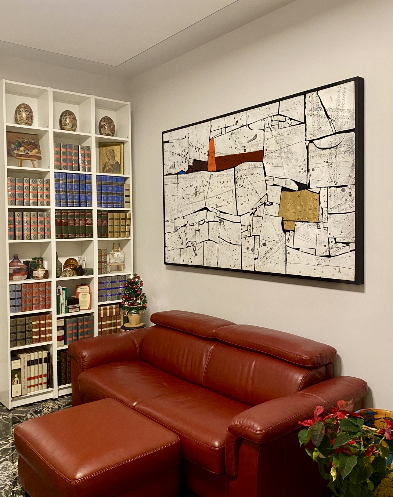 Cosa c'è di meglio che sedersi sul proprio divano e leggere un buon libro e ogni tanto lasciare andare la mente nei suoi pensieri...alzando lo sguardo verso la propria opera d'arte preferita...Oppure passeggiare per casa e sentire il piacere d'essere circondato e coccolato da segni e colori che, creando la giusta armonia con l'ambiente circostante, ti fanno apprezzare e vivere di buon gusto in pace con i tuoi cari la bellezza della tua casa...Oppure ritornare dopo un viaggio e sentire il calore di cose vissute e familiari che ti donano atmosfere private e personali...